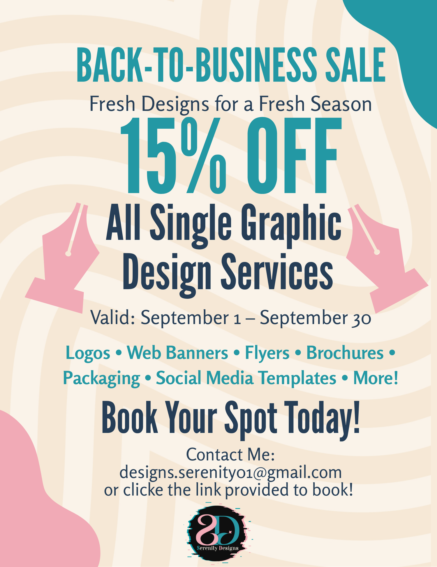 At Serenity Designs, every project is more than just visuals — it’s a strategic blend of creativity, clarity, and purpose. From bold branding to impactful print and digital designs, my work is crafted to connect with audiences and elevate brands.