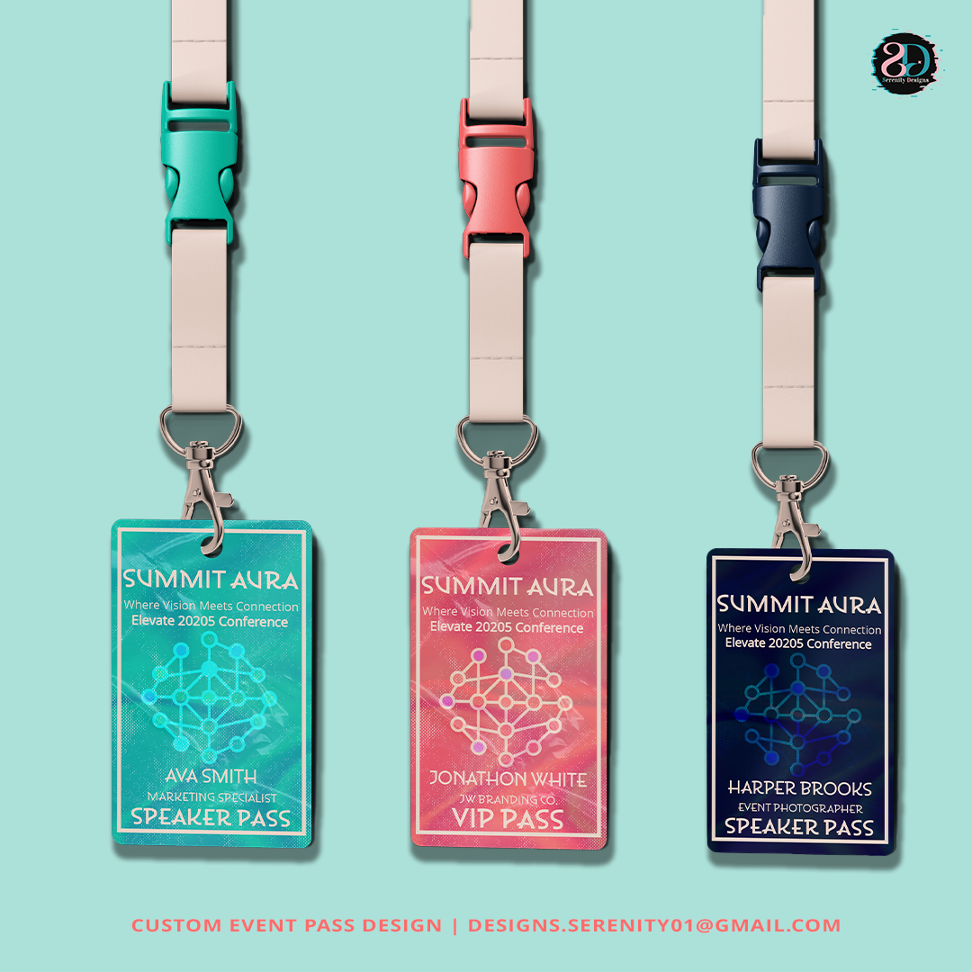 Professionally designed tickets featuring QR codes, attendee details, and sleek branding. (Please specify ticket size in email with other project information.) -